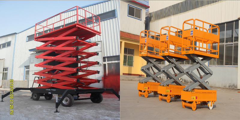 Mobile scissor lift according to the requirements can be selected as the two phase, three-phase, battery, diesel engine for lifting power, also can choose special locations explosion-proof motors, electrical appliances, etc. The elevator, under the control of elevator control method for electric, hand, electric dual or remote control, can still use during blackout. This series of elevator has a mobile and flexible, steady lifting, large capacity, easy to operate etc, mobile hoist is widely used in factories, grain depot, airports, gas stations, organs, wharf, wild power, street lamp maintenance and architectural decoration and other industries. Mobile lift can be designed and manufactured according to customer's requirements.